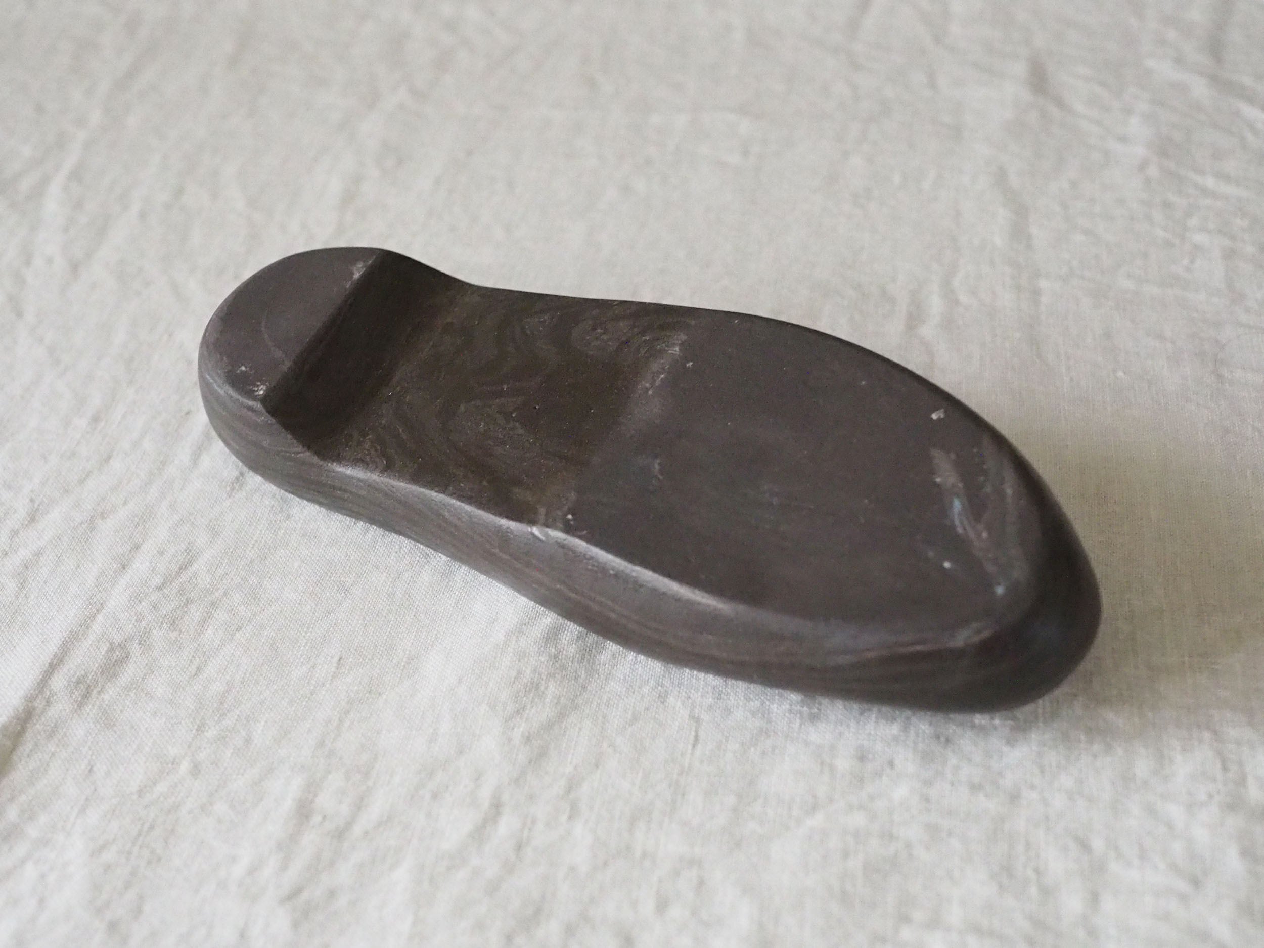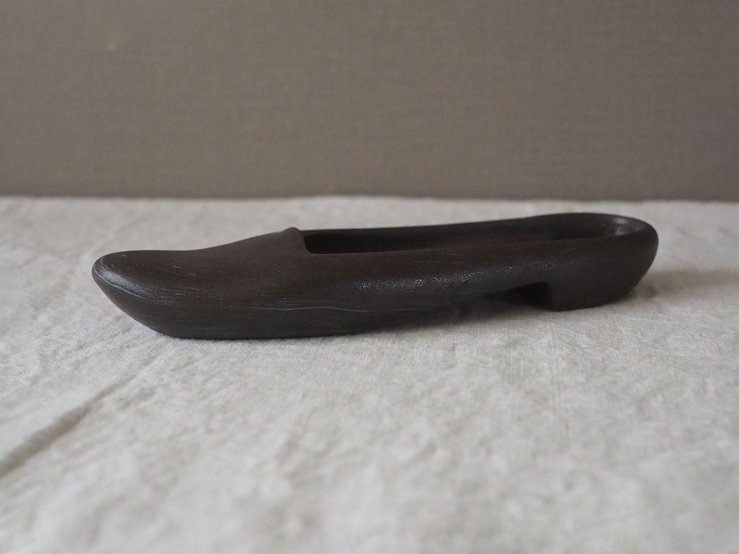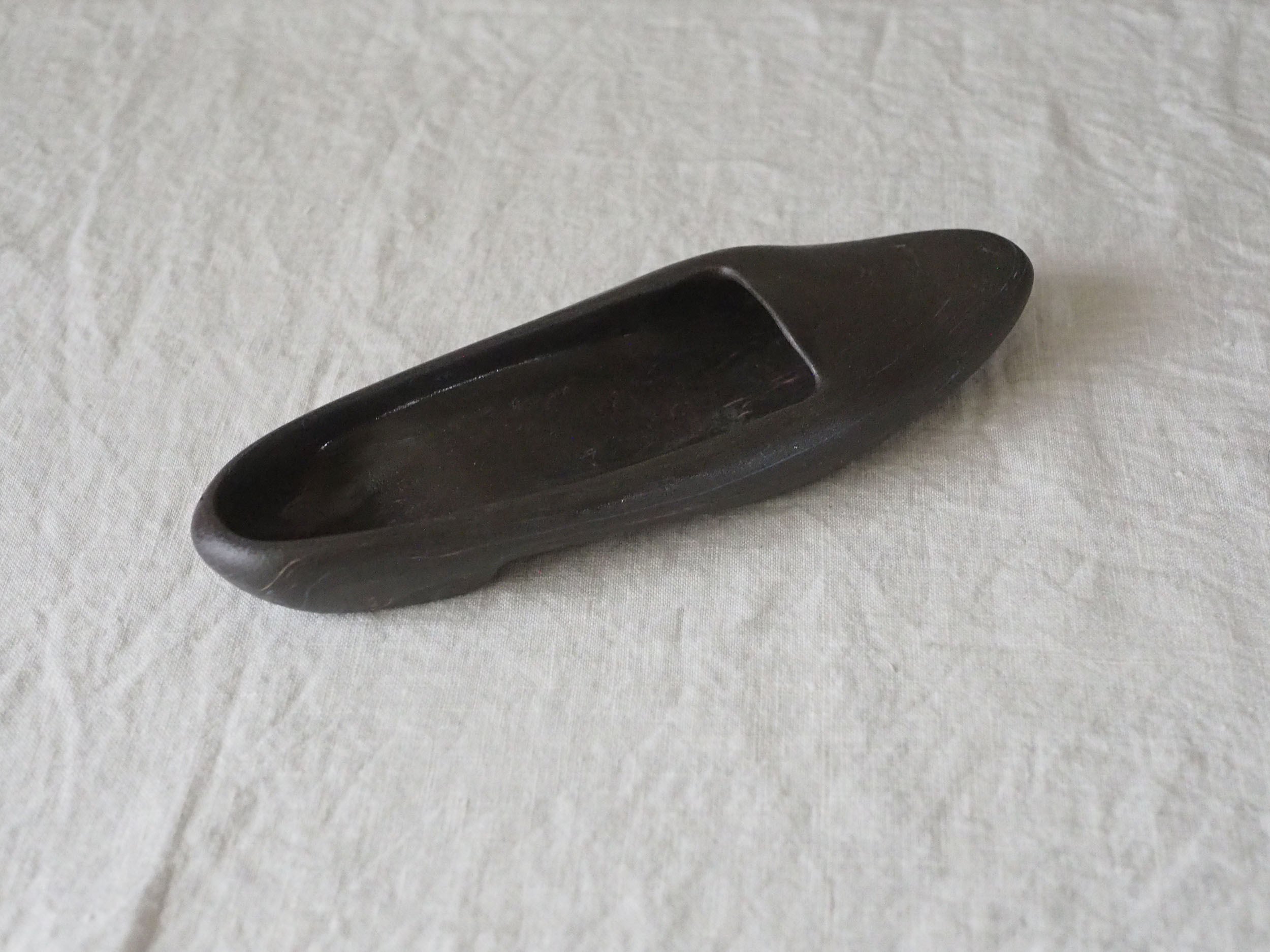 表面にマーブルが施されているのではなく、マーブルに練り込んだ土の塊からカタチを削り出していくというまるで彫刻のような技法です。それは木彫か大理石を削ったかのような表情をみせてくれます。靴の中も削り出しをしています。