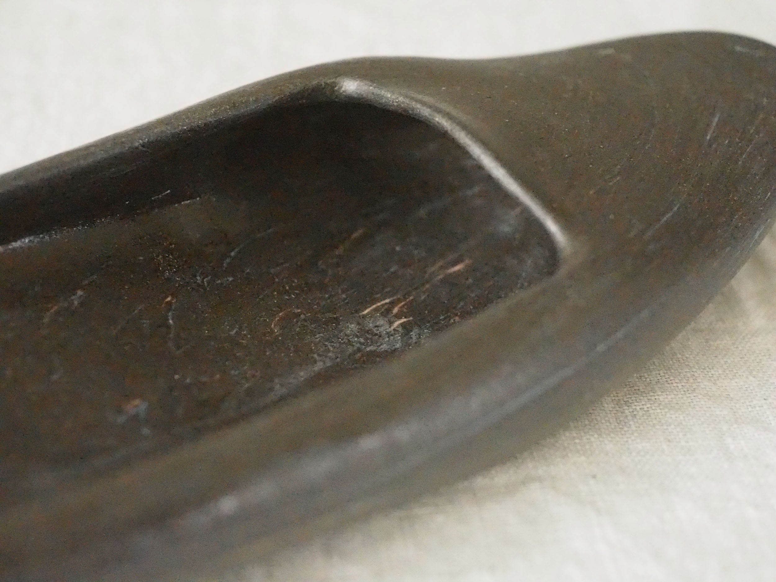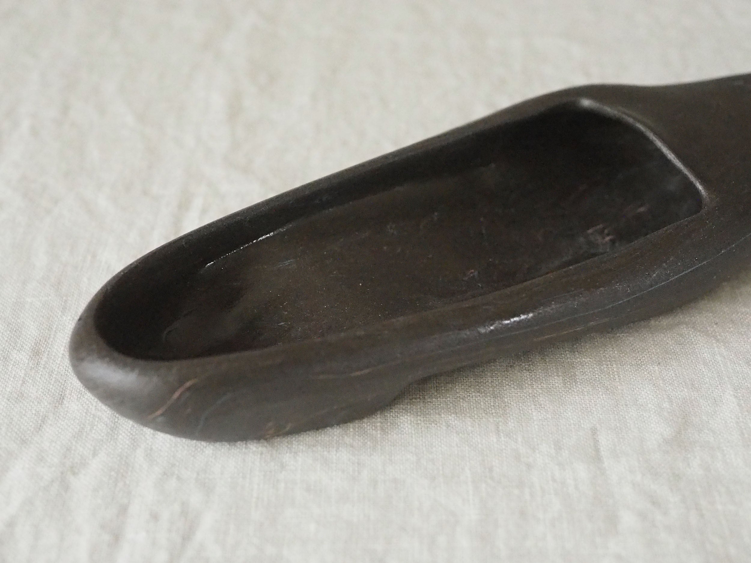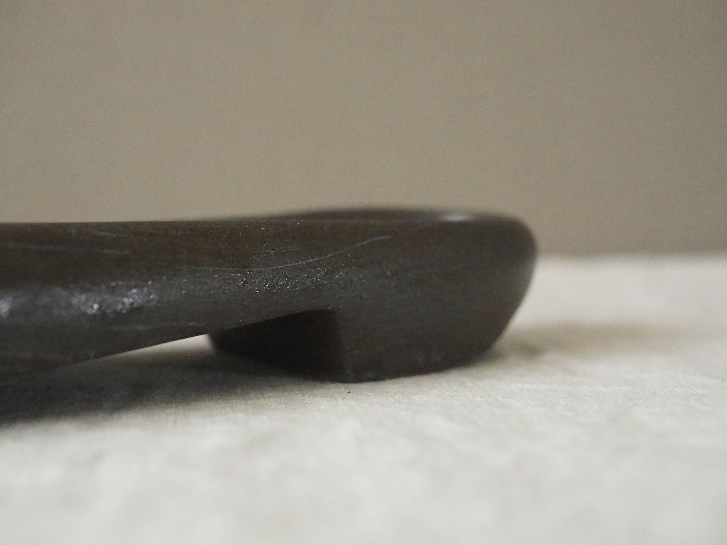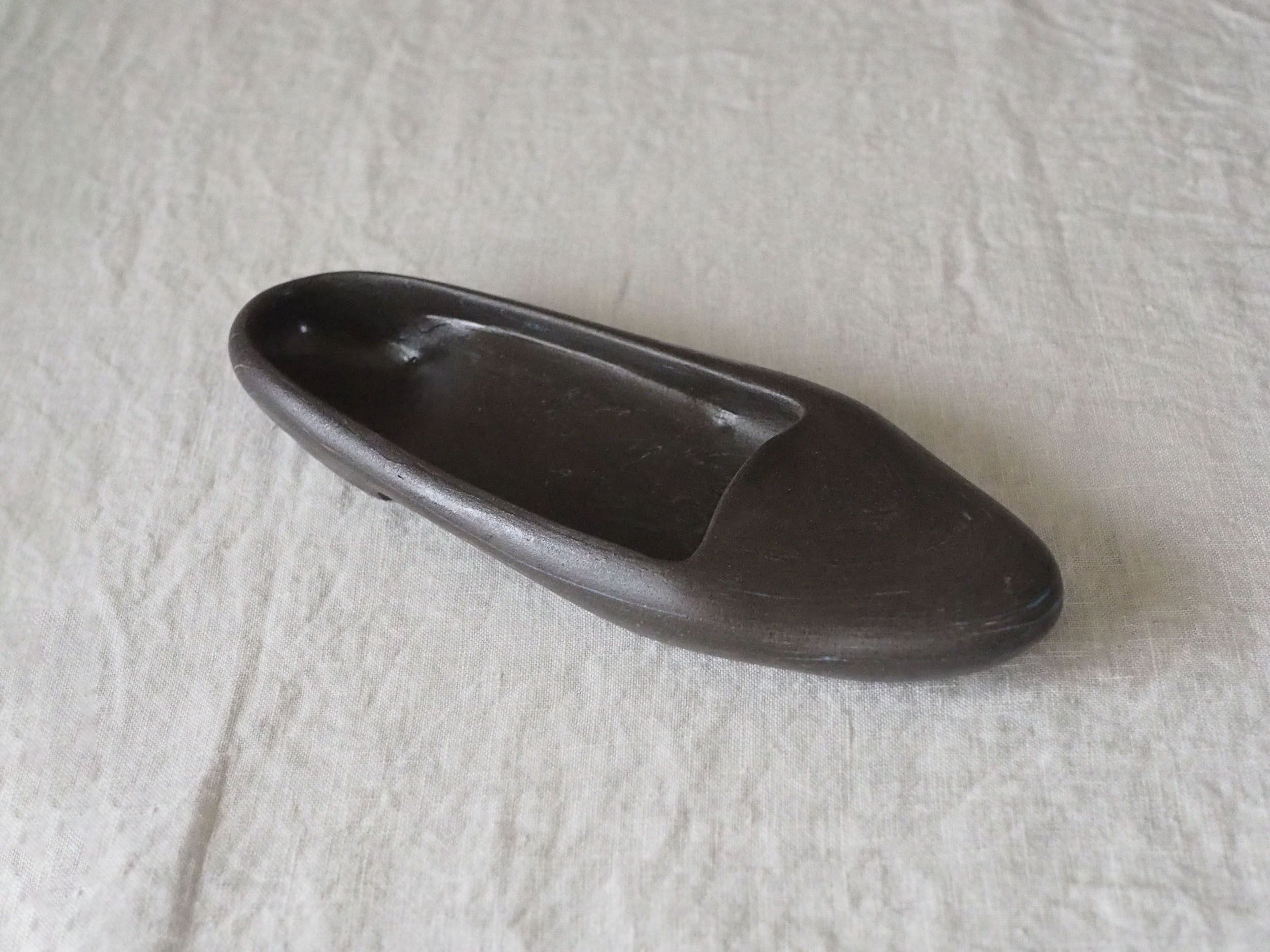 表面にマーブルが施されているのではなく、マーブルに練り込んだ土の塊からカタチを削り出していくというまるで彫刻のような技法です。それは木彫か大理石を削ったかのような表情をみせてくれます。靴の中も削り出しをしています。