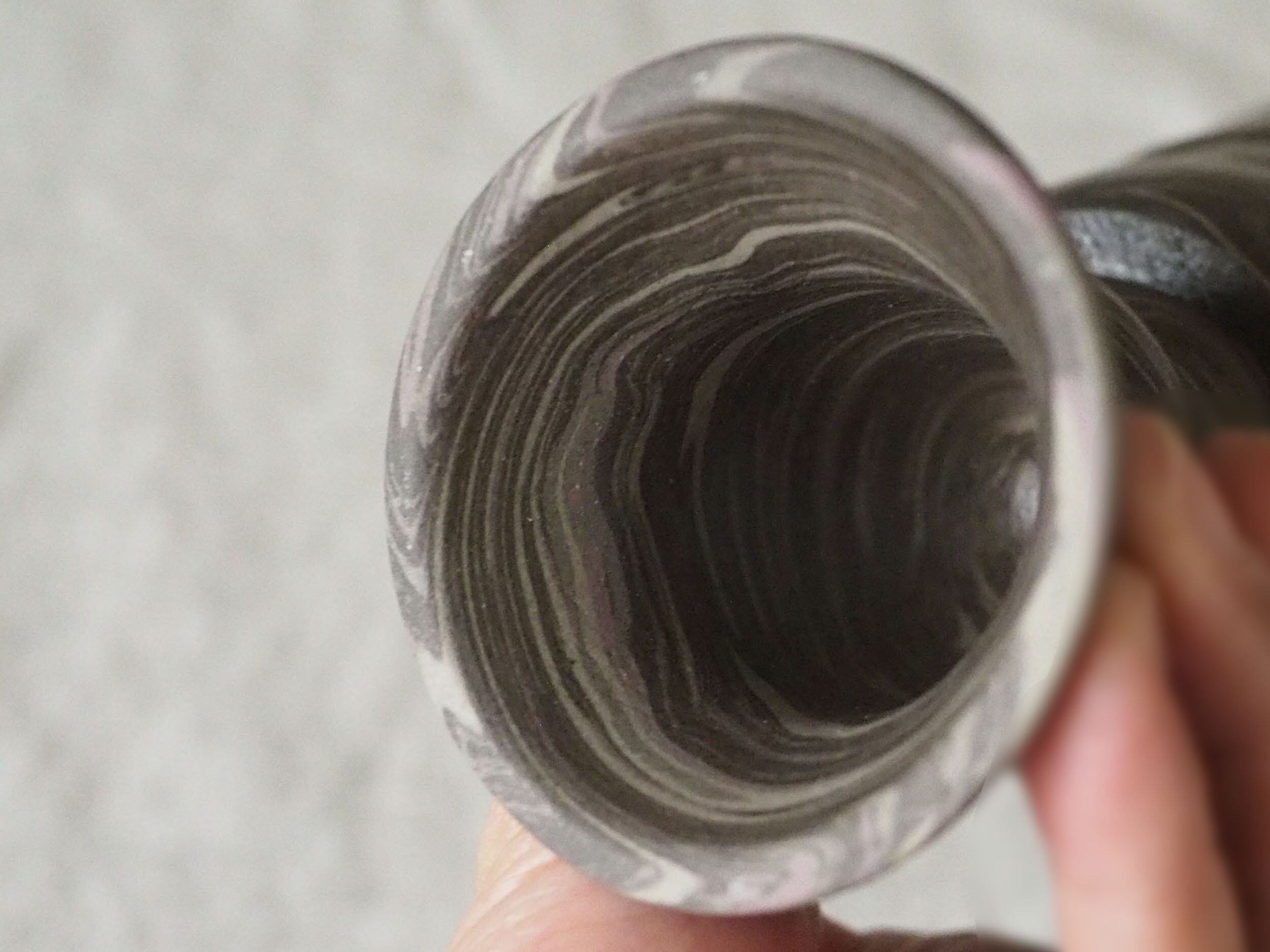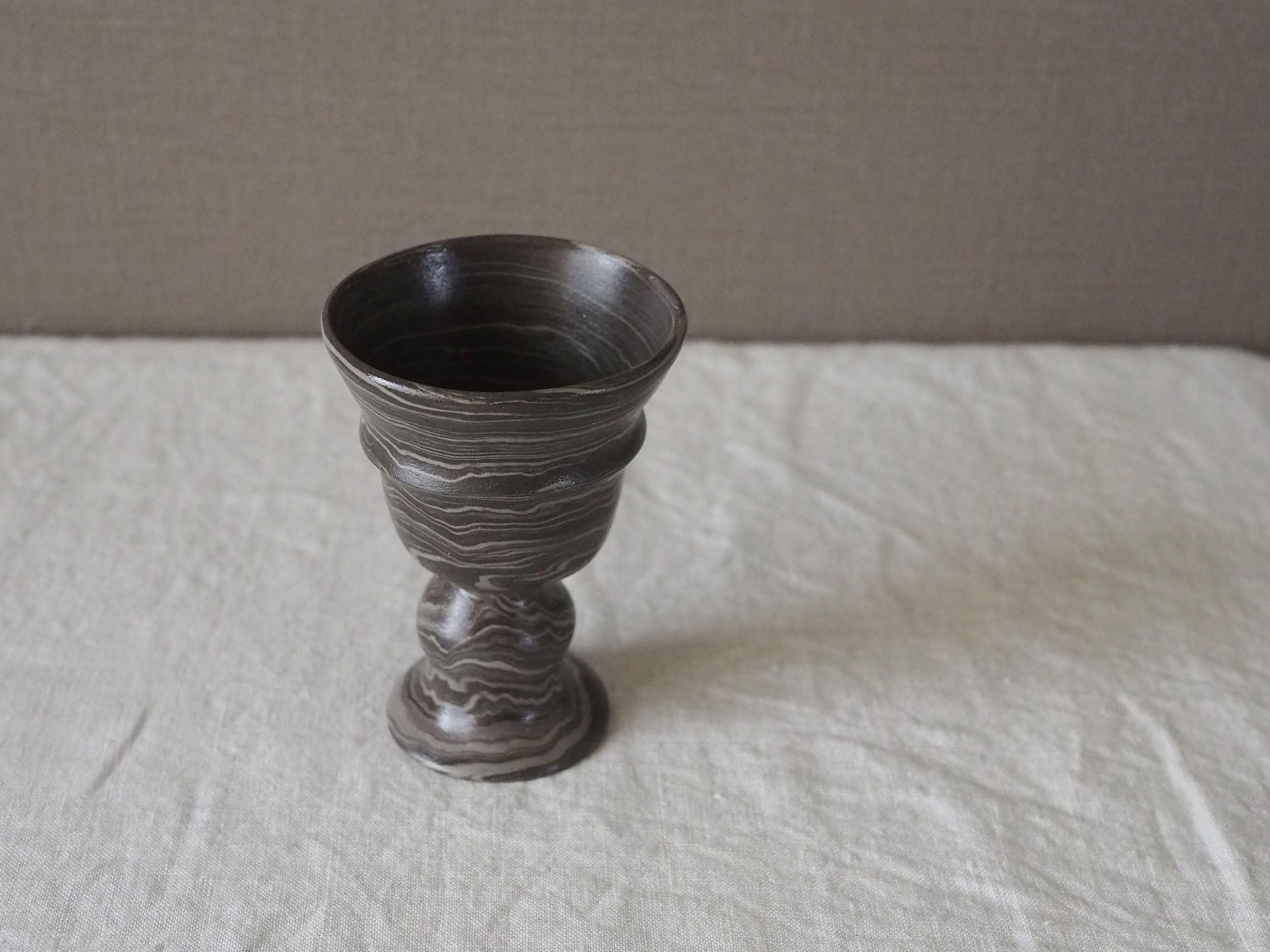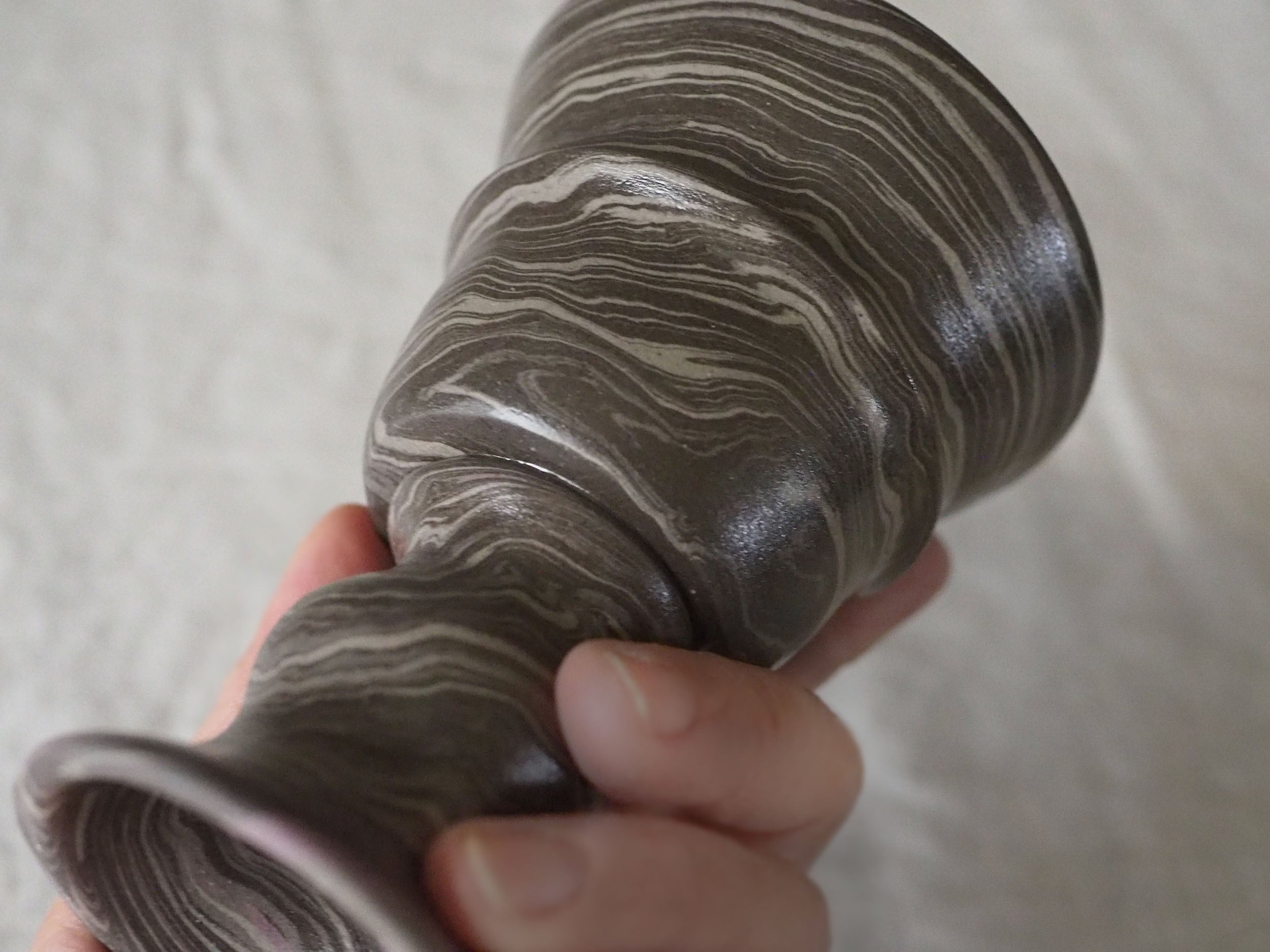 表面にマーブルが施されているのではなく、マーブルに練り込んだ土の塊からカタチを削り出していくというまるで彫刻のような技法です。それは木彫か大理石を削ったかのような表情をみせてくれます。