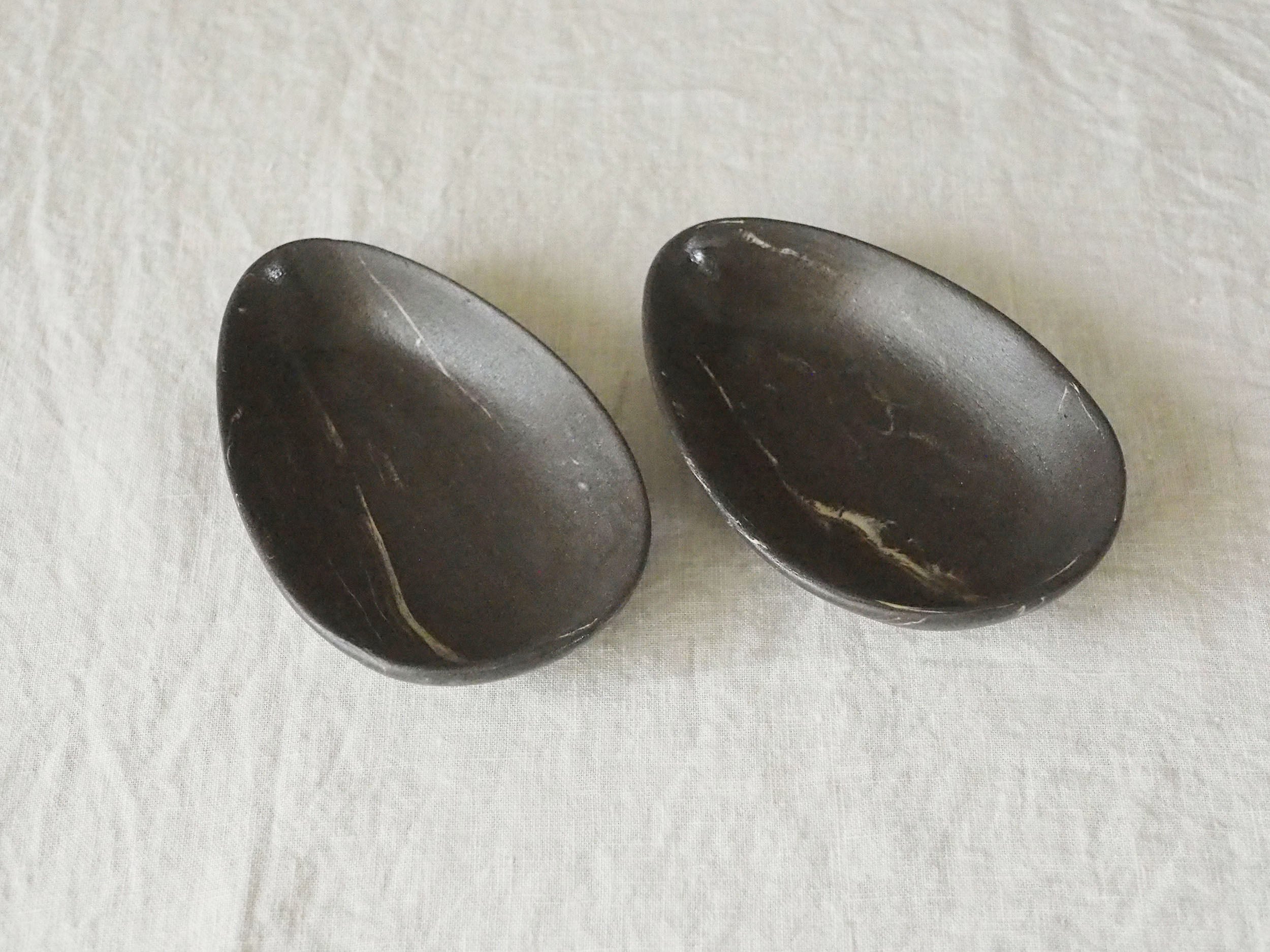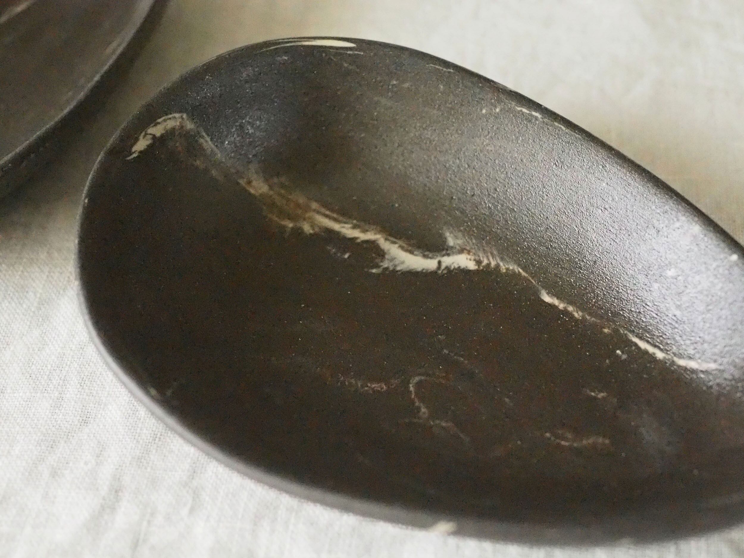 カラフルな土を使ったマーブルを得意とする藤川氏だが、新月のために黒を基調としたシリーズを制作。